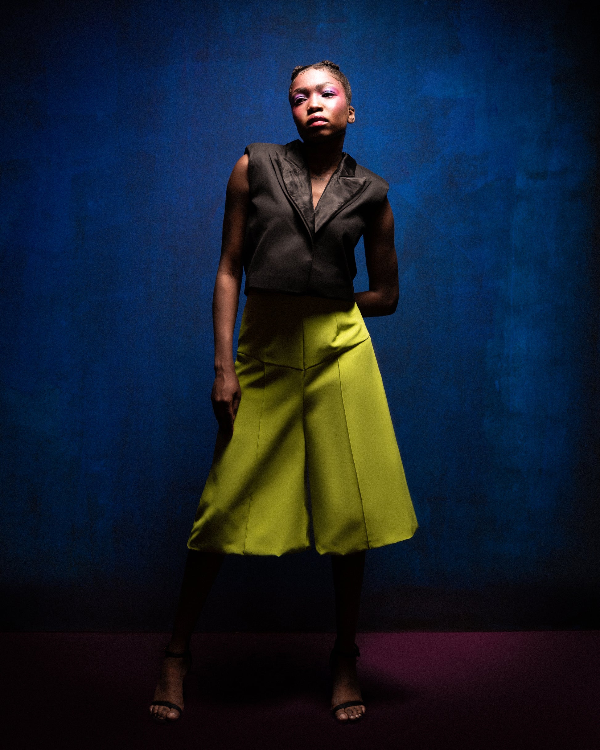 Crafted from lime green crepe, these shorts boast a stylish boxy silhouette and a flattering cut that sits perfectly on the hips.