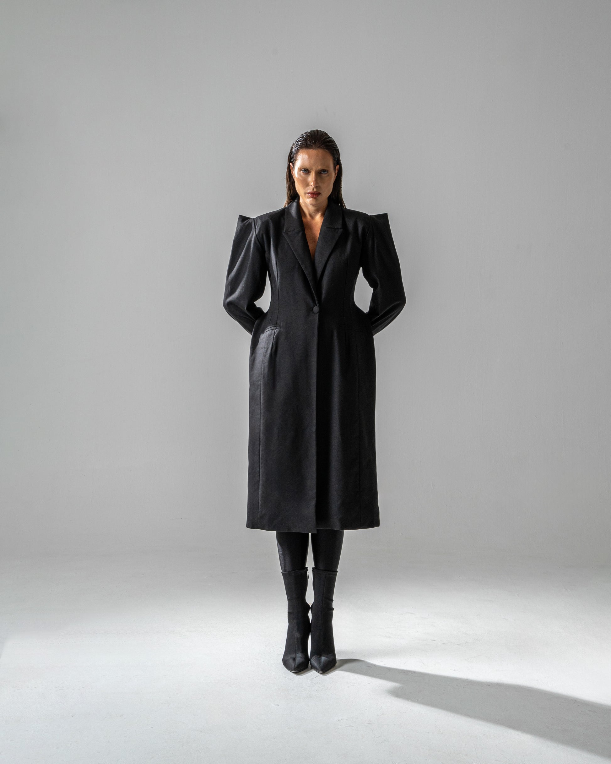 The Oxford exquisite coat is expertly tailored from premium virgin wool to provide warmth and style. The fitted waistline and boldly contoured hips create a sleek and sophisticated silhouette, while the sharp shoulders lend an air of daring confidence to any ensemble.